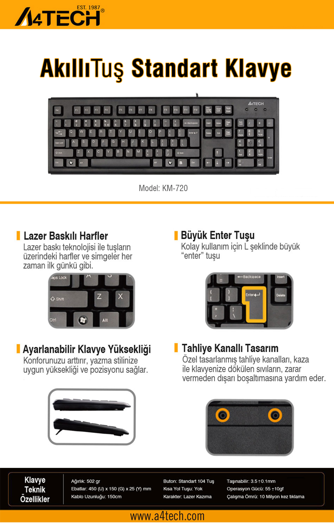 A4 Tech KM-720 FN-Multimedya Kablolu Q-Klavye