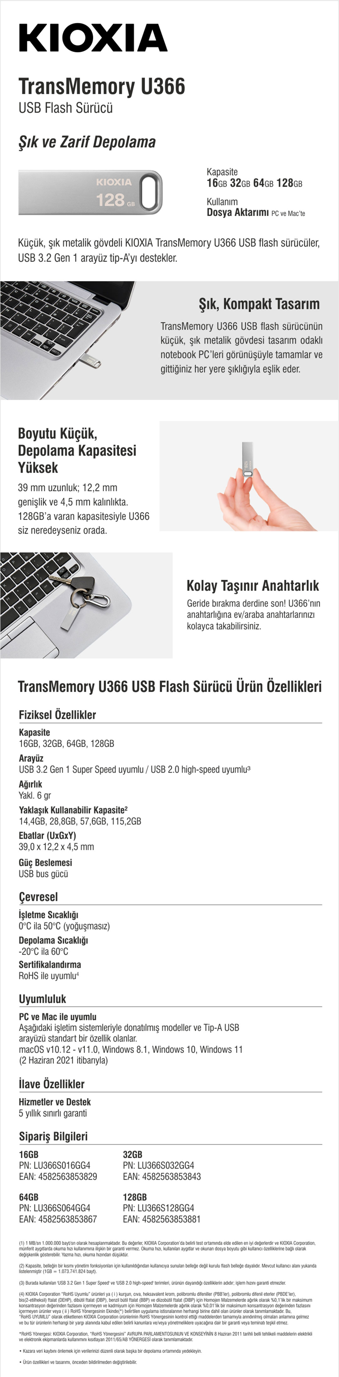 KIOXIA U366 USB 3.2 Gen 1 USB Bellek