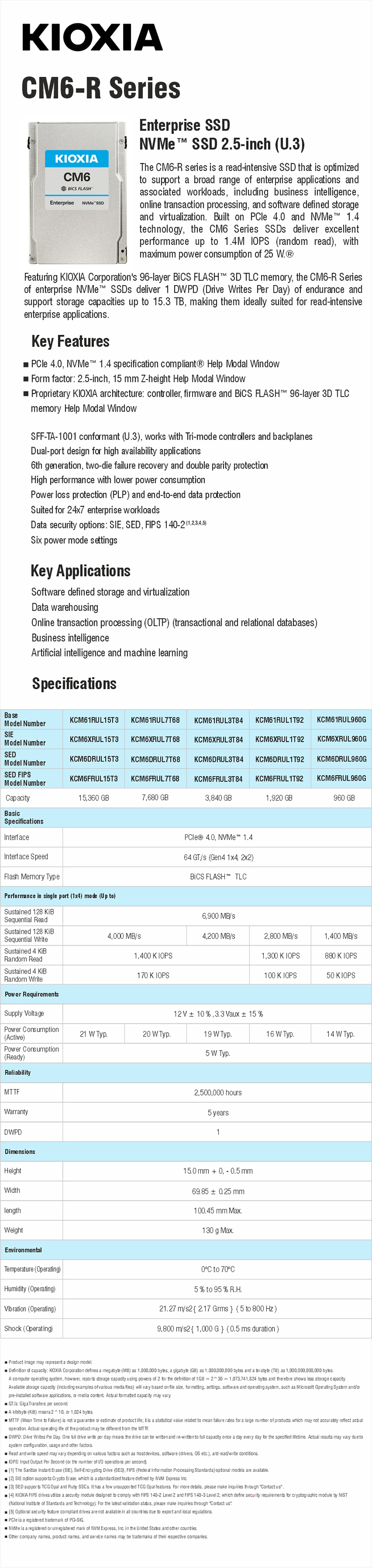 KIOXIA CM6-R ENTERPRISE SSD