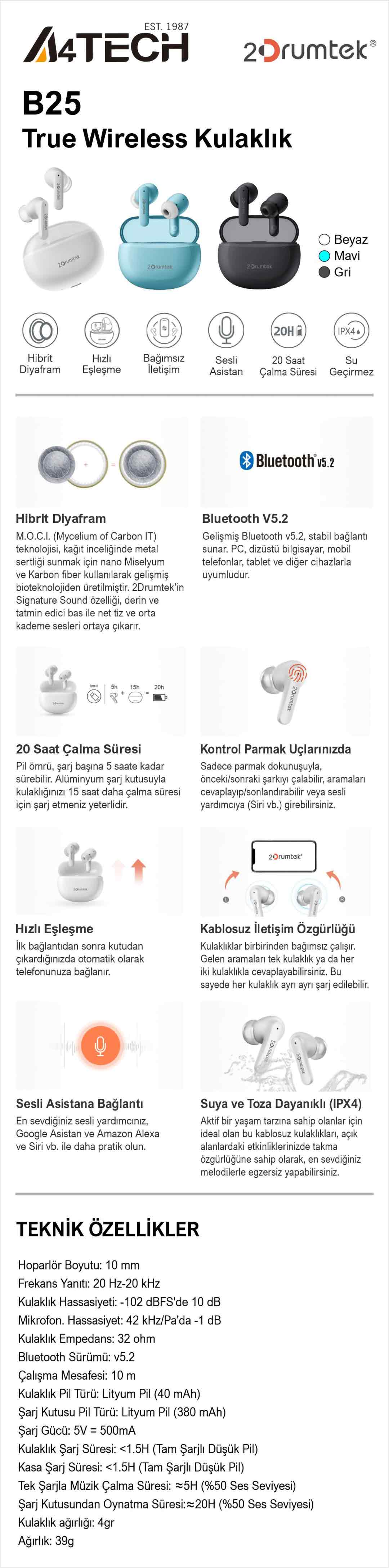 A4 TECH B25 TWS Kulaklık