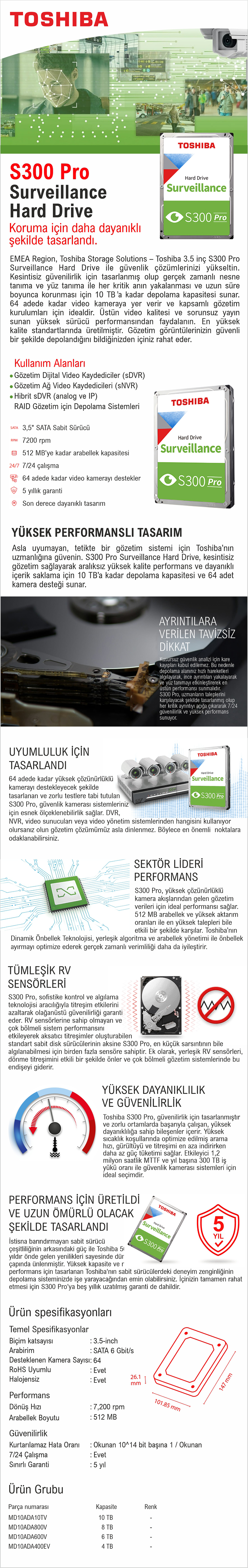 TOSHIBA S300 3.5" SATA3 DAHiLi PRO SURVEILLANCE HDD