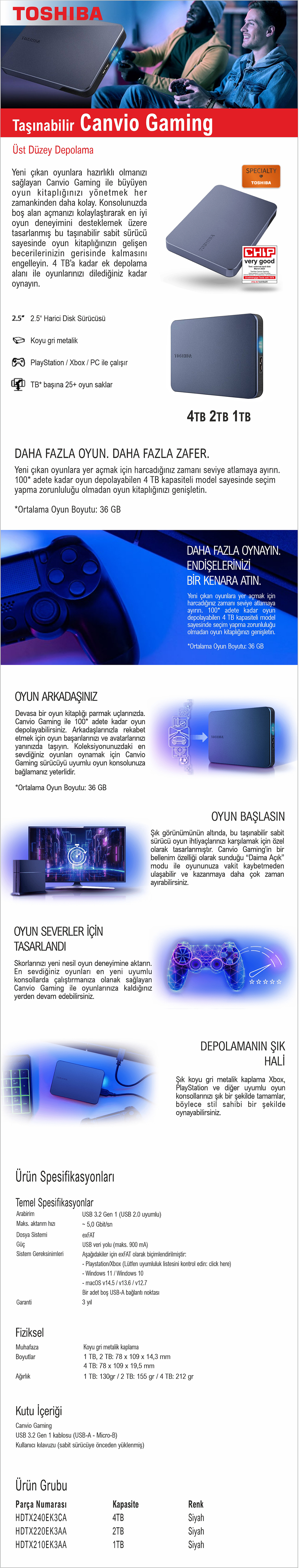 TOSHIBA CANVIO GAMING TAŞINABİLİR 2.5" HARİCİ SABİT SÜRÜCÜ