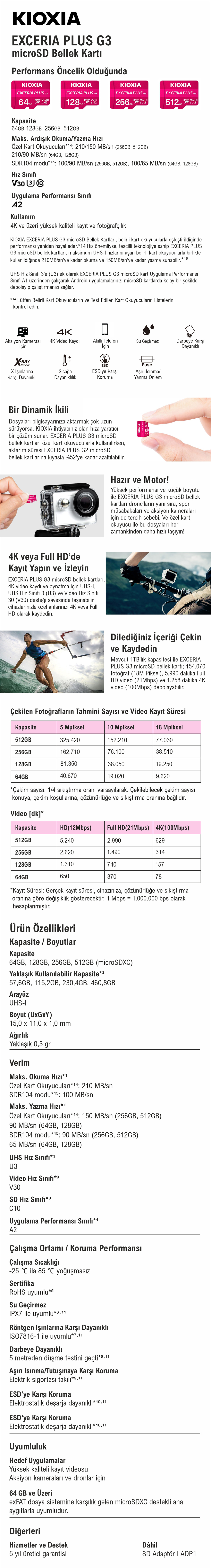 KIOXIA Exceria Plus G3 Micro SD Hafıza Kartı