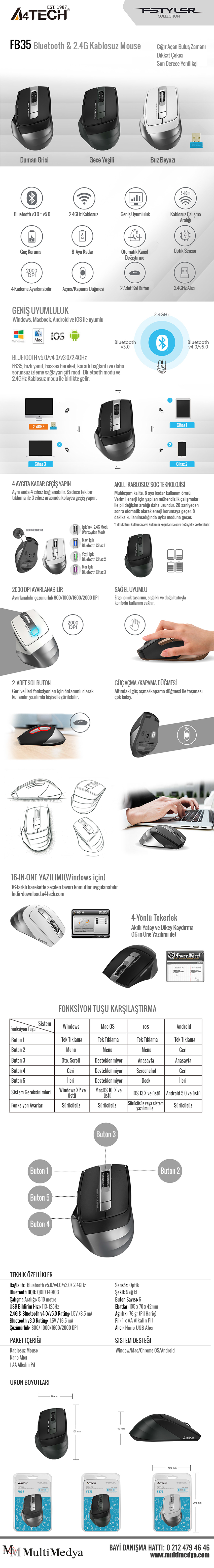 A4 Tech FB35 Fstyler Bluetooth & 2.4G Kablosuz Optik Mouse