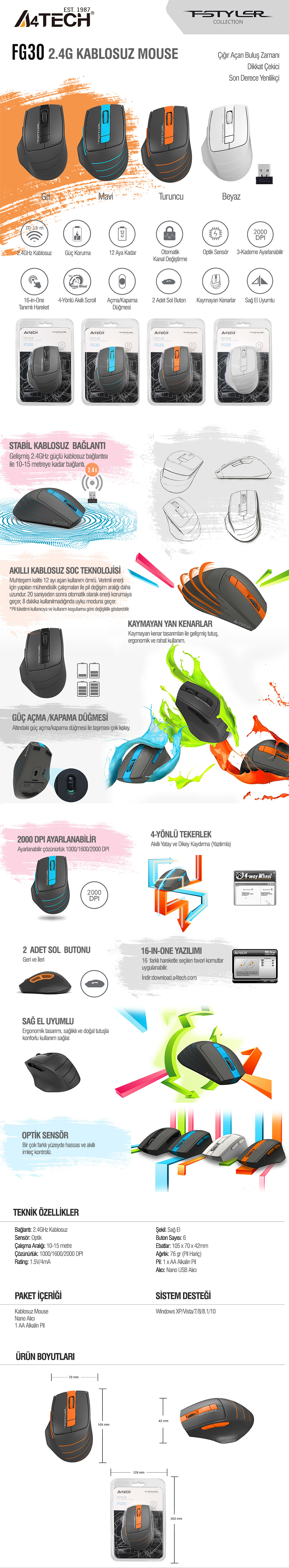 A4 Tech FG30 Fstyler Kablosuz Optik Mouse