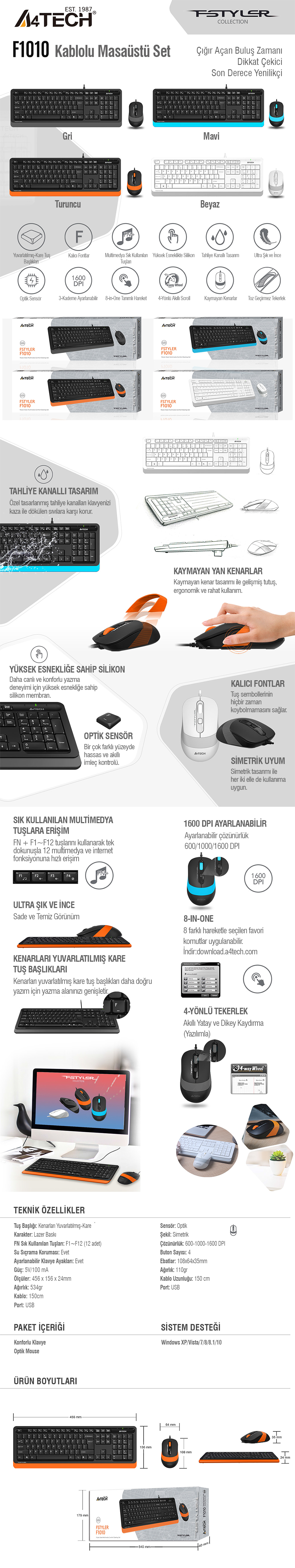 A4 Tech F1010 Fstyler FN Multimedya Q-TR Kablolu Set