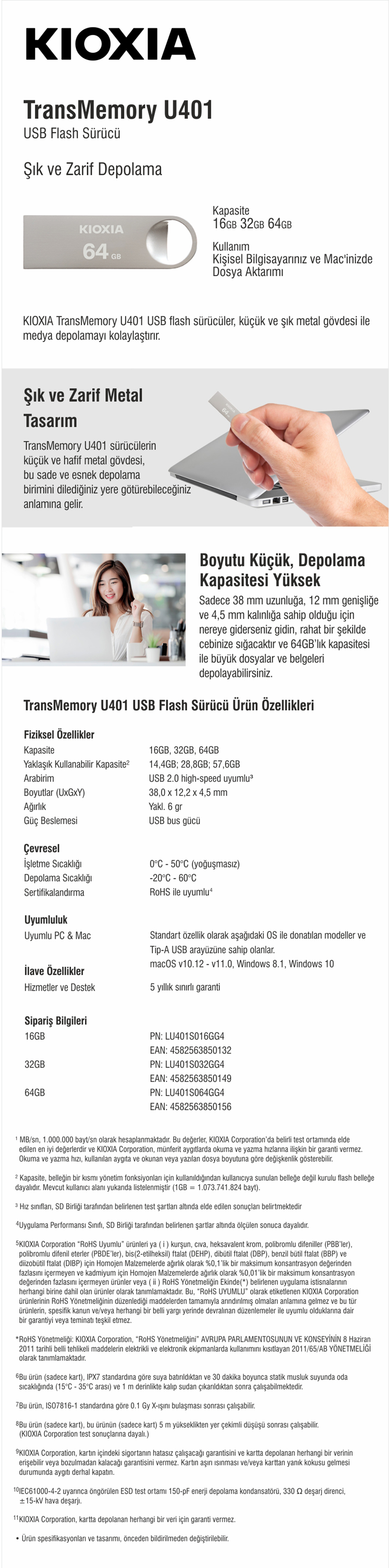 Kioxia U401 USB 2.0 Metal Bellekler