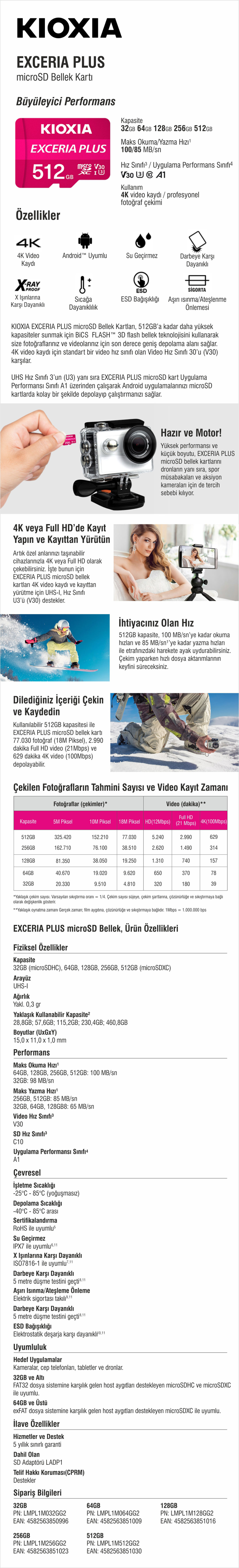 Kioxia Exceria Plus MICROSD Hafıza Kartı (Adaptörlü)