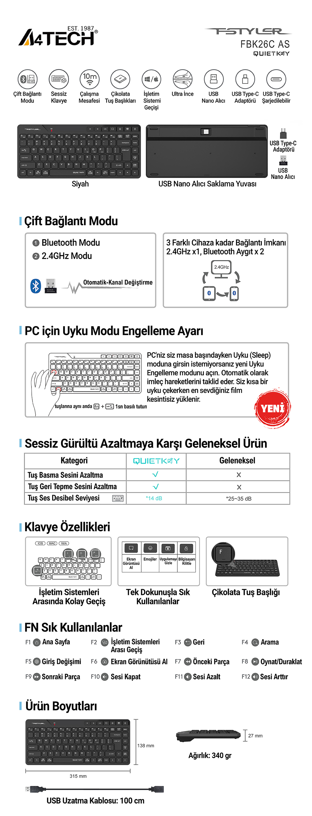 A4 TECH FSTYLER FBK26C AS KABLOSUZ SESSİZ KLAVYE