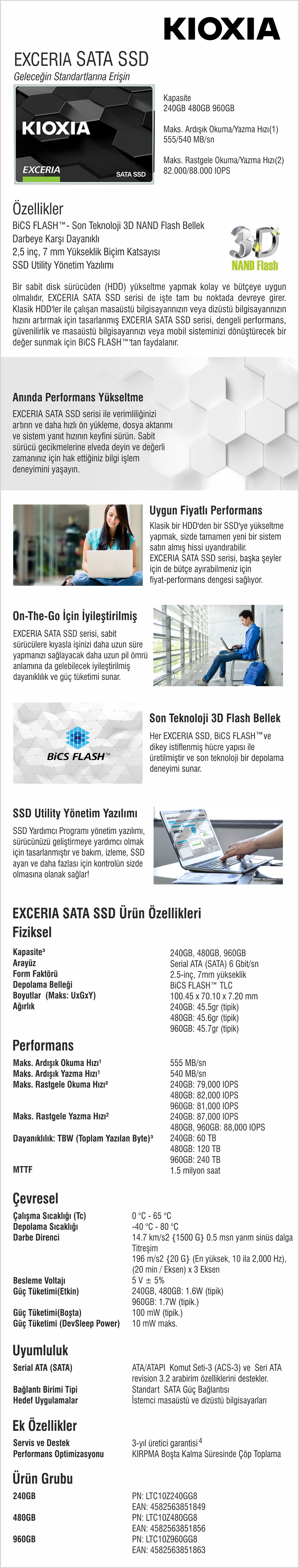 Kapasite: 240GB, 480GB, 960GB