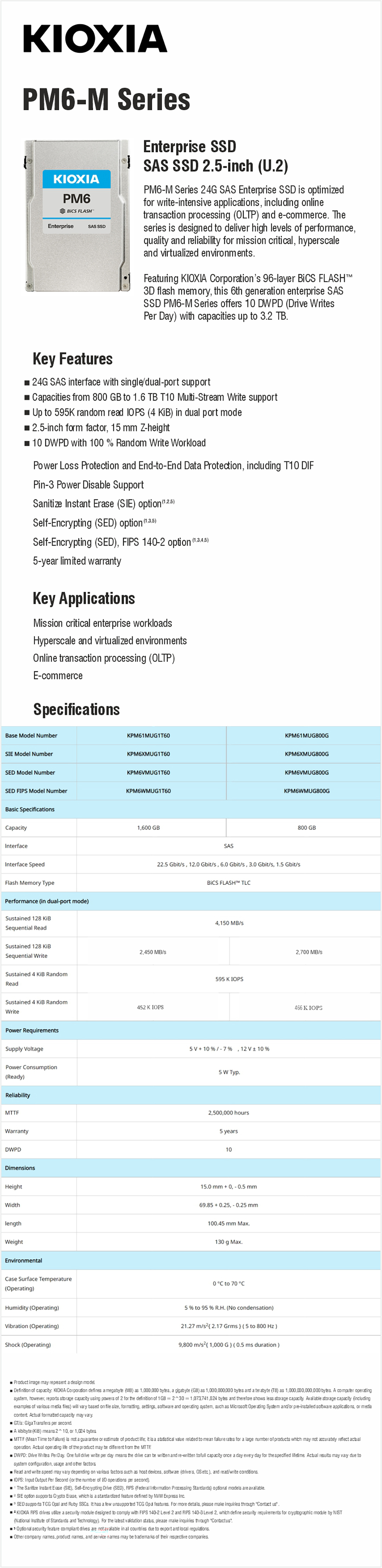 KIOXIA PM6-M ENTERPRISE SSD