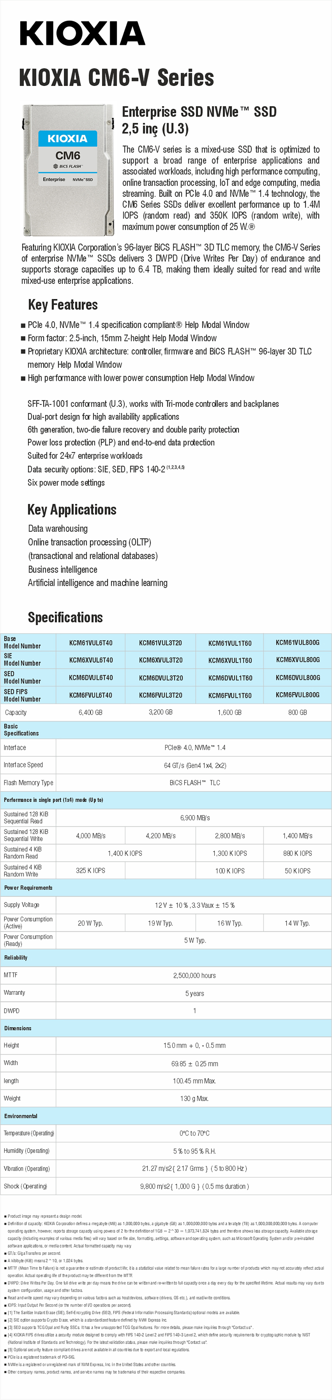 KIOXIA CM6-V ENTERPRISE SSD