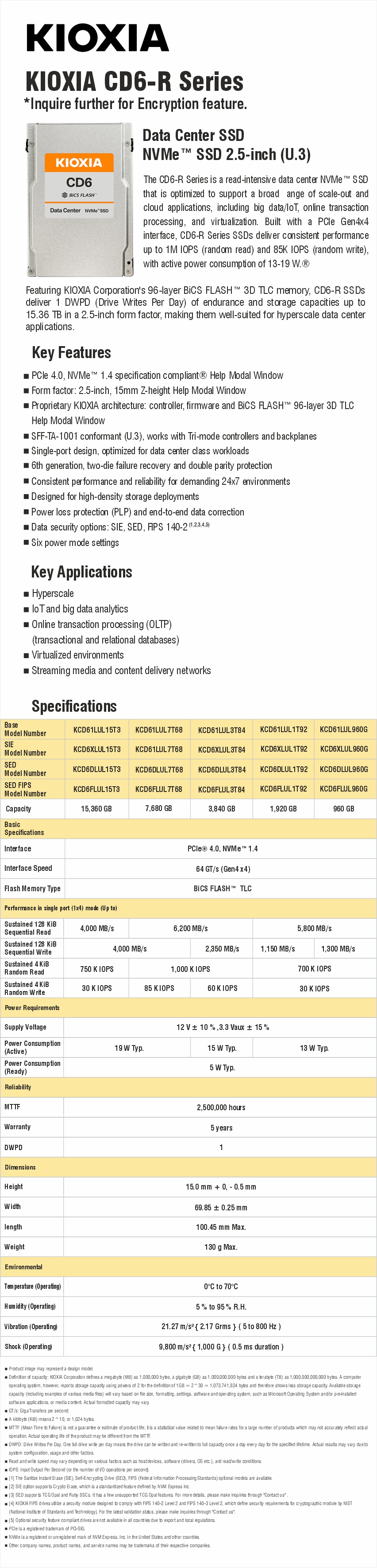 KIOXIA CD6-R ENTERPRISE SSD