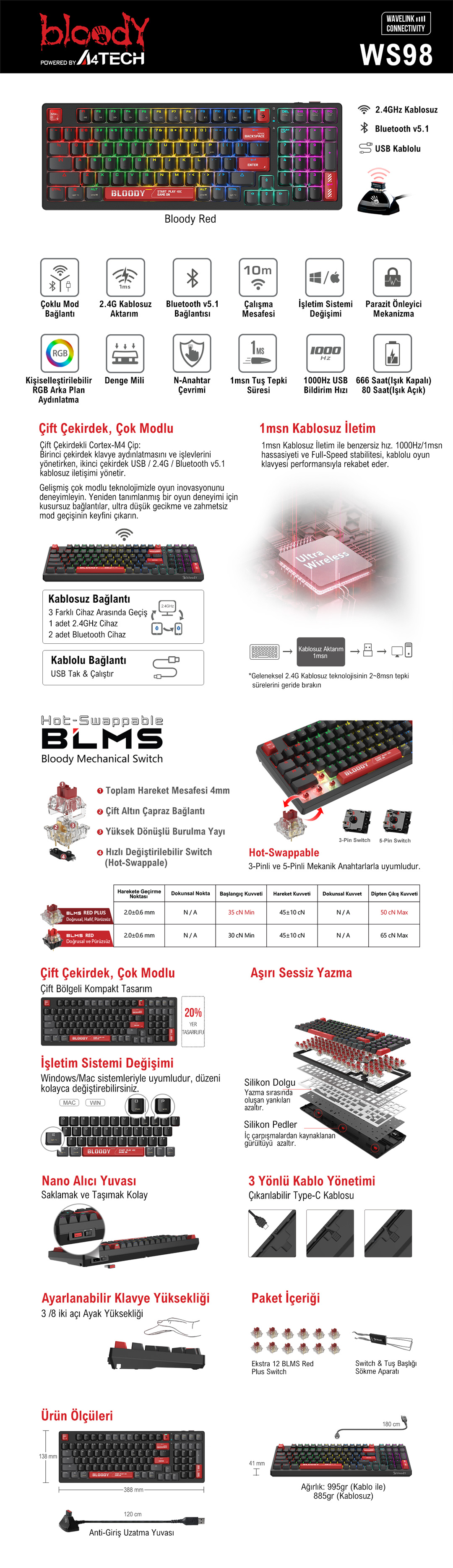 BLOODY WS98 OYUN KLAVYESİ