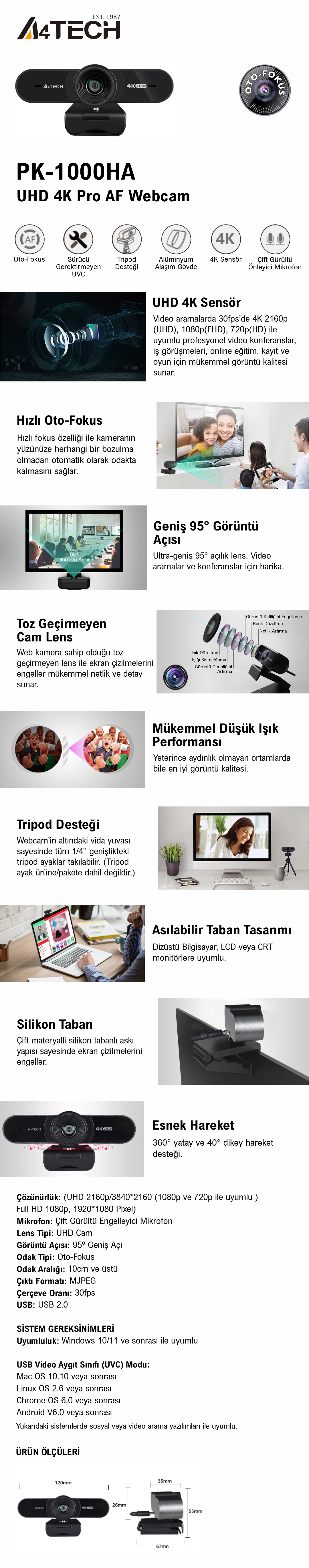 A4 TECH PK1000HA 4K 2160P OTO-FOKUS WEBCAM